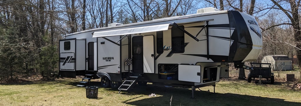 We upgraded our Jeep Gladiator to a Ford F350 in 2021 as we searched endlessly for a fifth wheel that could actually work for long-term family living. And after nearly two years of planning, that RV finally sat in our driveway—ready for its first “camping” trip.