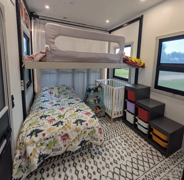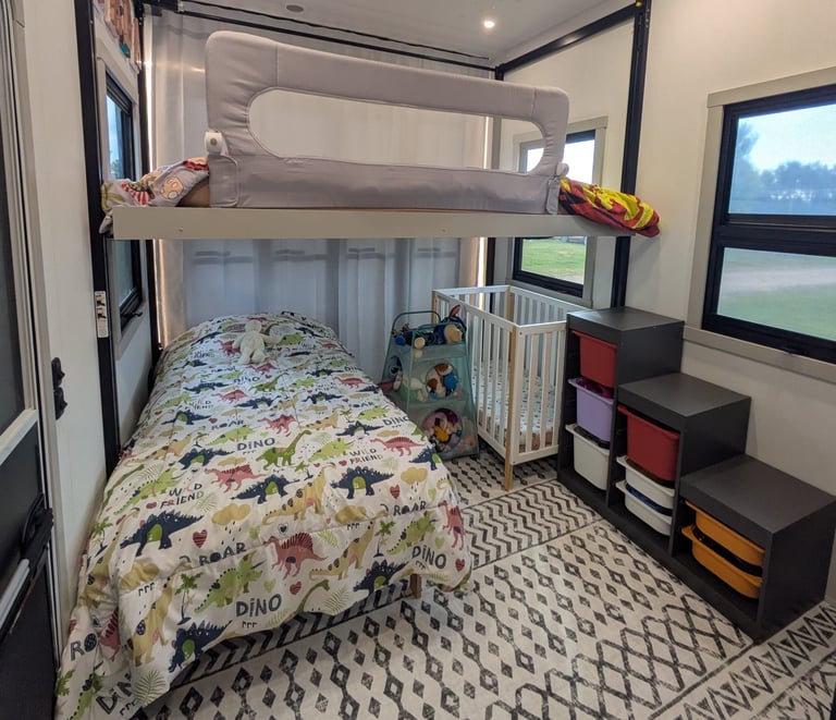 This list of items were used to convert our Brinkley Model G3970 Toy Hauler into a bedroom for four kids!
